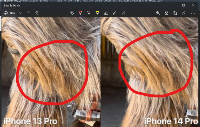 Also, in the right image, above the word "Pro", you can barely make out the black lines on that object, whereas in the left image, they are much more distinguishable.