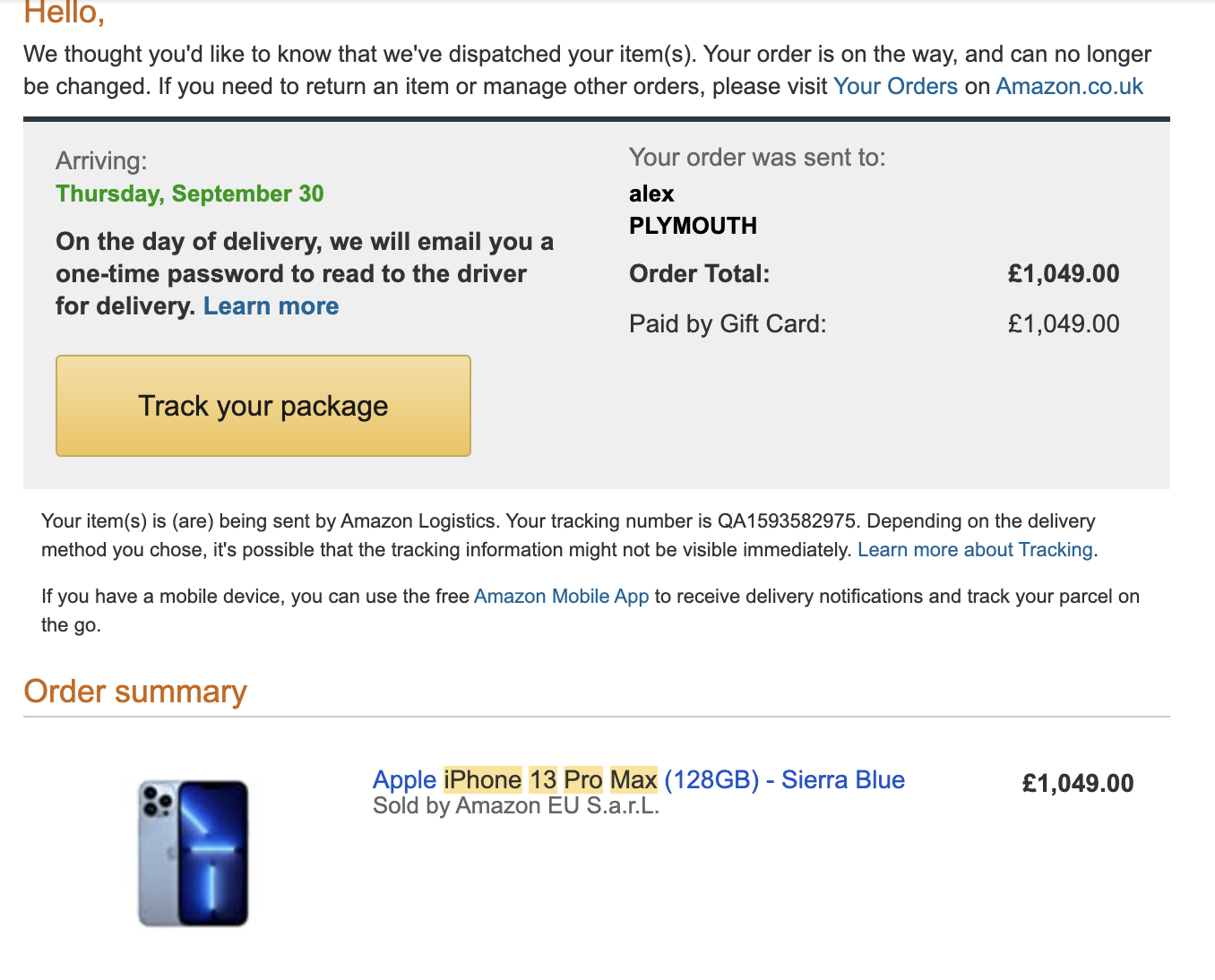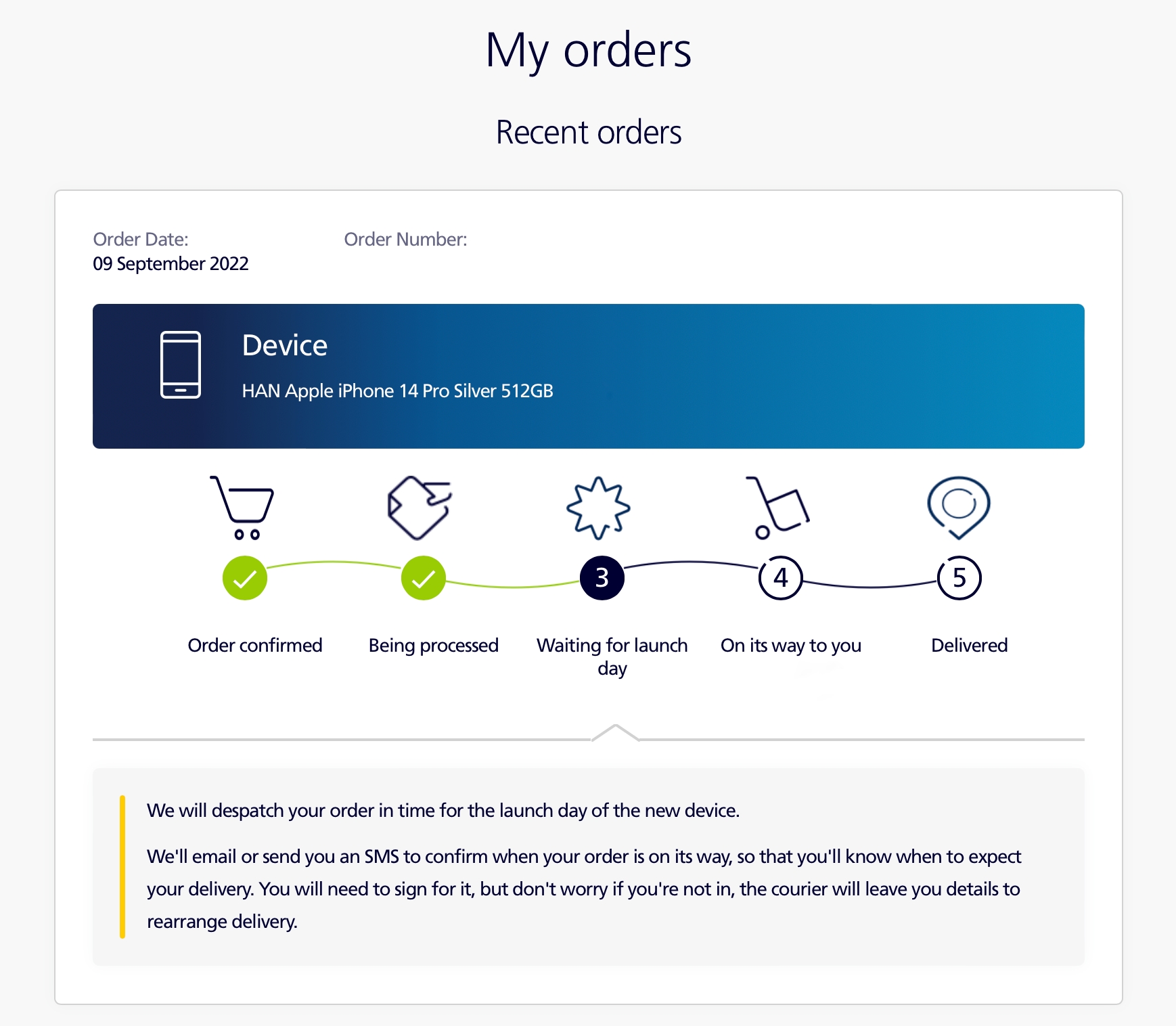Tried to speak with Three about the lack of shipping notification, but the agents were pretty useless and had no other info other than 'you will receive a message when it is being delivered'.