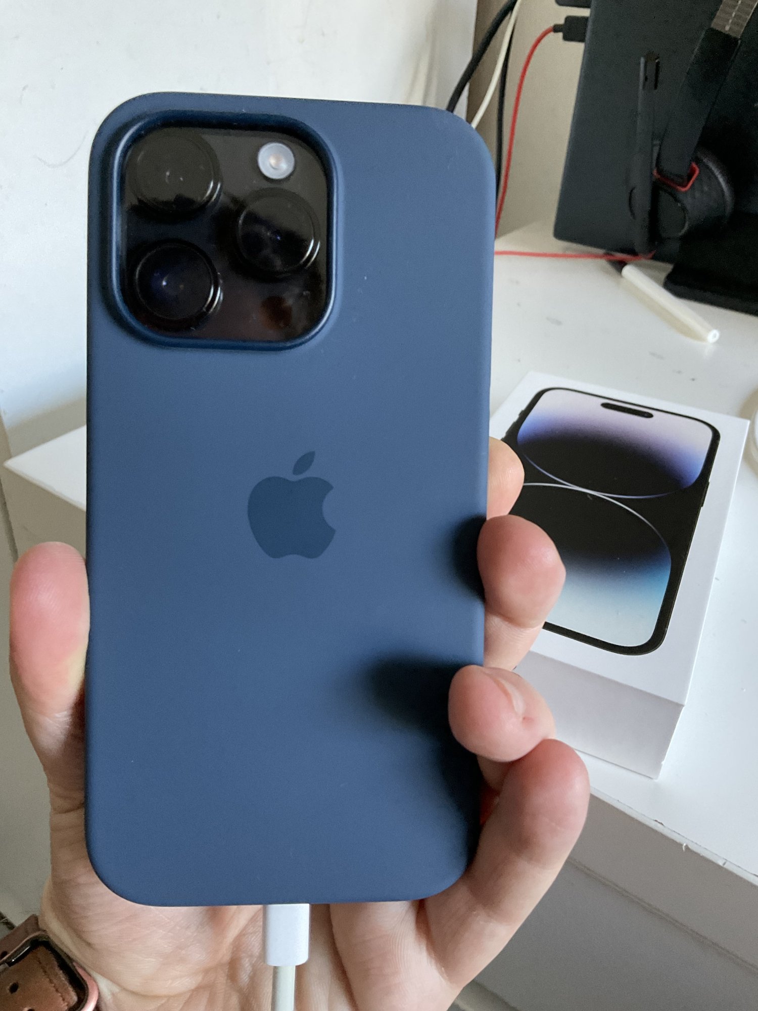 In case anyone wanted a pic of the Storm Blue case with the Space Black phone: