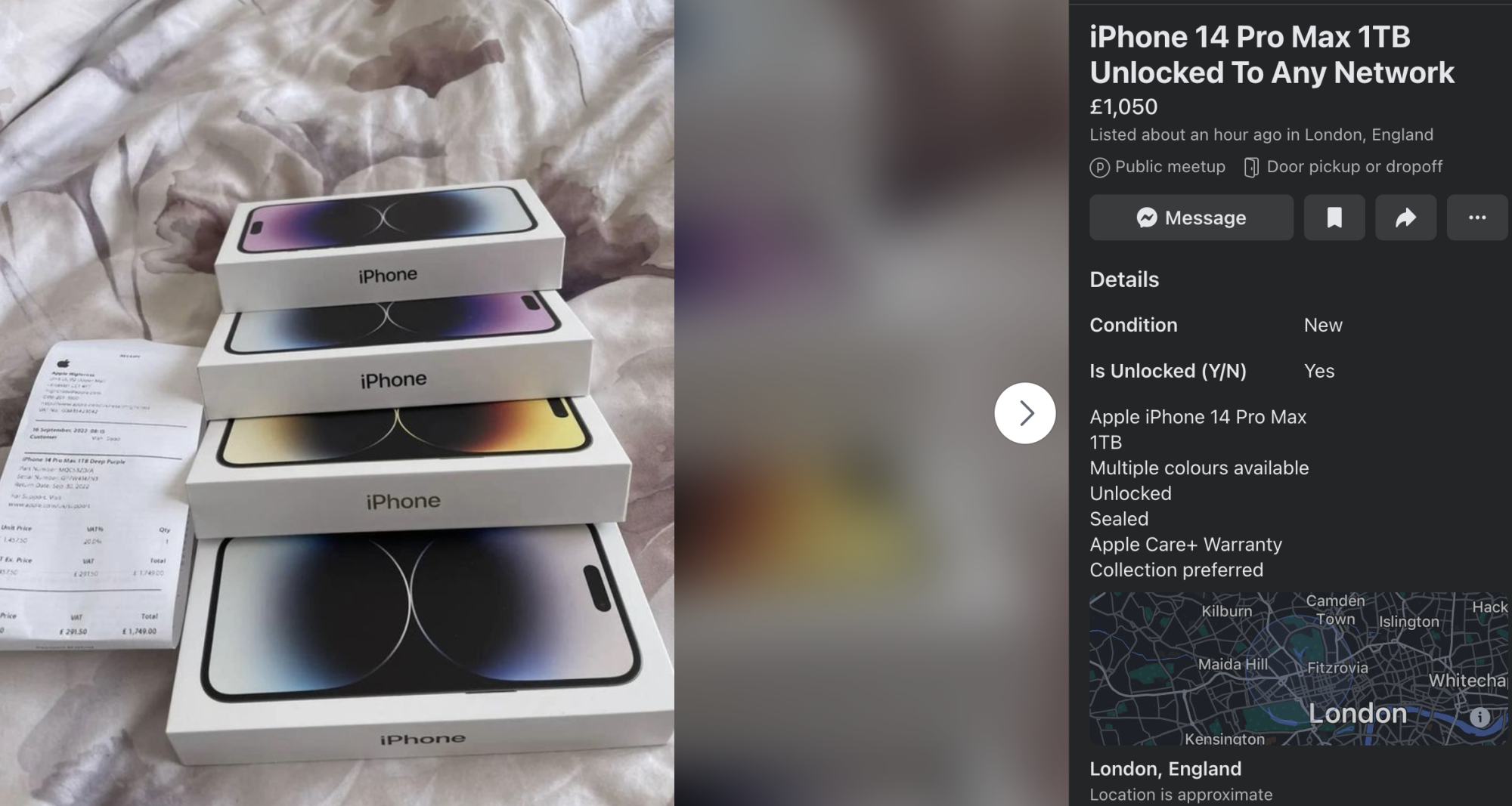 Very suss. A £1700 phone for £1050 🤔 I would not buy any expensive electronic devices off Facebook Marketplace.Hmmm... seems suss?