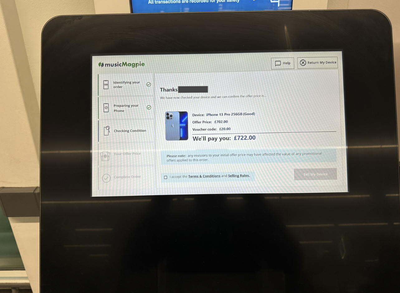 Put my phone in the smartdrop kiosk today and it actually worked, but they adjusted the offer down as I’d missed the 21 day cut off.