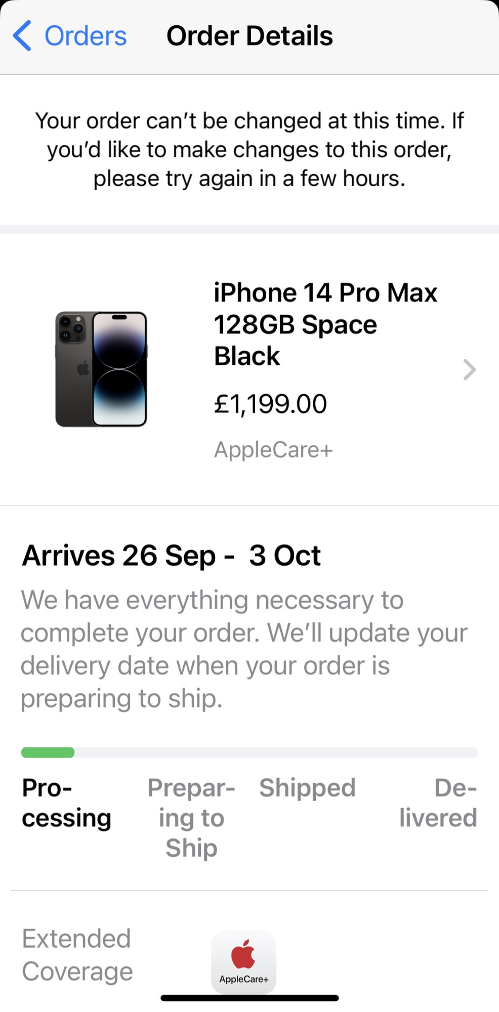 Can’t believe that the Space Black Pro Max 128GB is now showing as November delivery so consider yourself lucky I guess 😳
