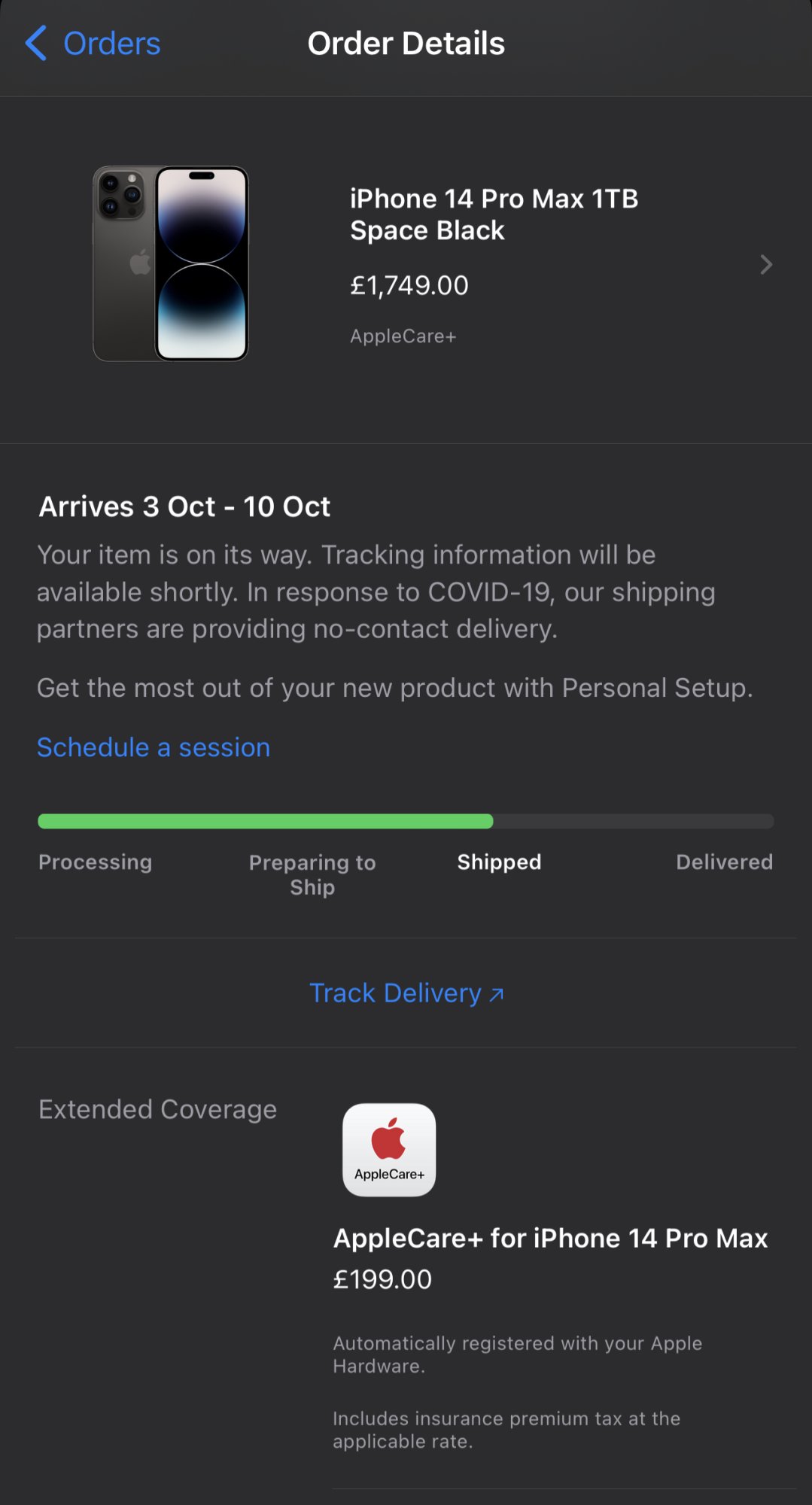 PM 1TB Space Black - preparing to ship. 3-10 Oct - somehow my case wasn’t charged using the Apple Credit so I now have £59 remaining 🙄![]()