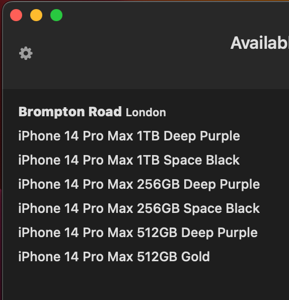 I've been refreshing the Apple app. Brompton Road is Knightsbridge London.