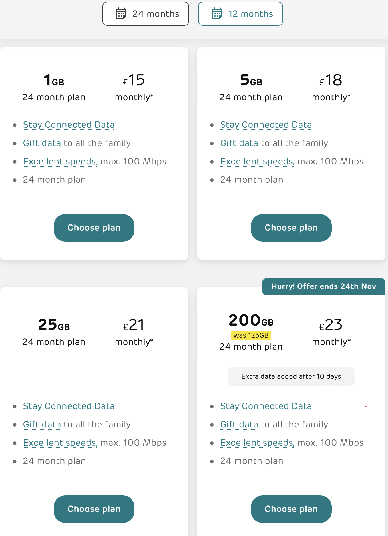 Granted it includes an extra and it’s max speed, but seriously? £26 for 5GB? When I took out my contract, I got 200GB for £25 with one extra and no speed limit!