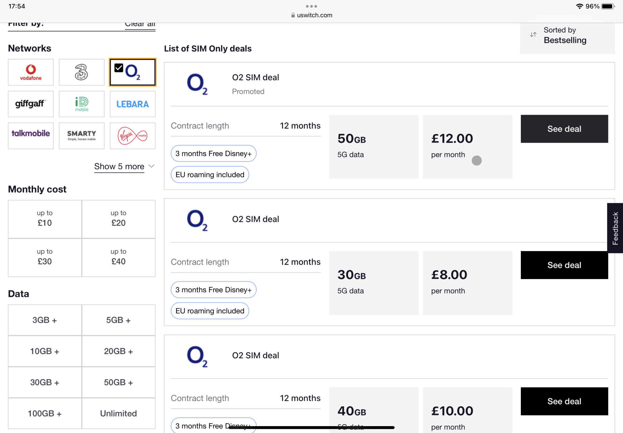 you need to look on Uswitch .. O2 have excellent pricing there!Yeah they do but I pay £9 a month for 12GB data and unlimited min and texts. Closest option on O2 is 10GB data with unlimited min and texts for £15 a month.