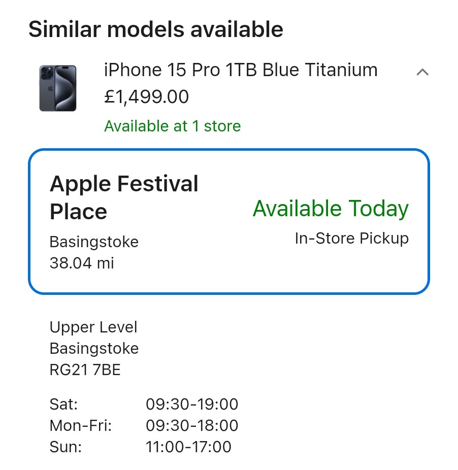 Anyone with deep pockets for a 1TB 15 Pro (non-Max) in blue, one is currently available in Basingstoke...