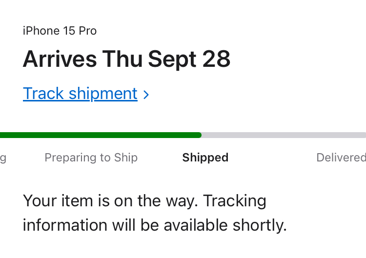 FYI my original 2-9 October order for iPhone 15 Pro 256gb natural titanium now says…Anxiety.