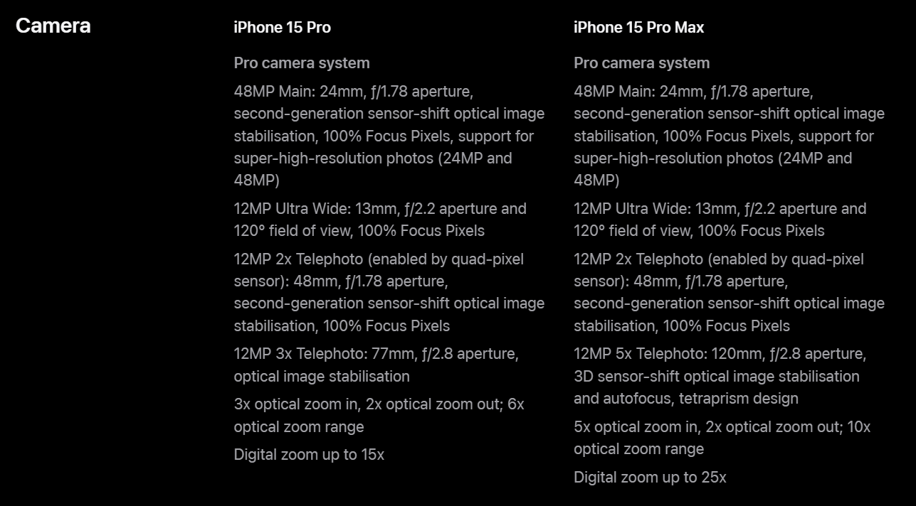 Just checked Compare iPhone — looks like they’re exactly the same this year 🤷