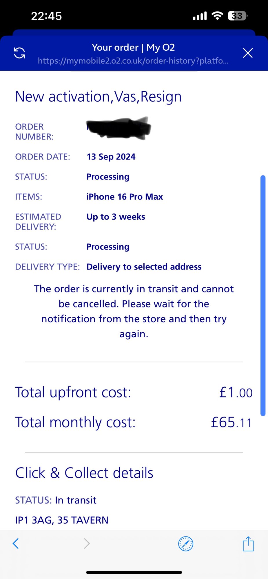 Just a heads up, it's generally a bad idea to post order numbers and other details like that to public forums - it would be easy for a troll to cancel or re-route your orderYay 🥳 hopefully can collect it Tomz