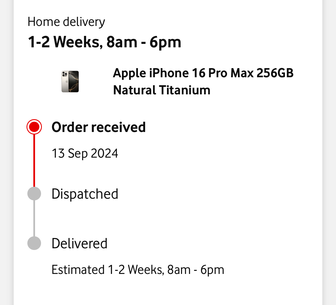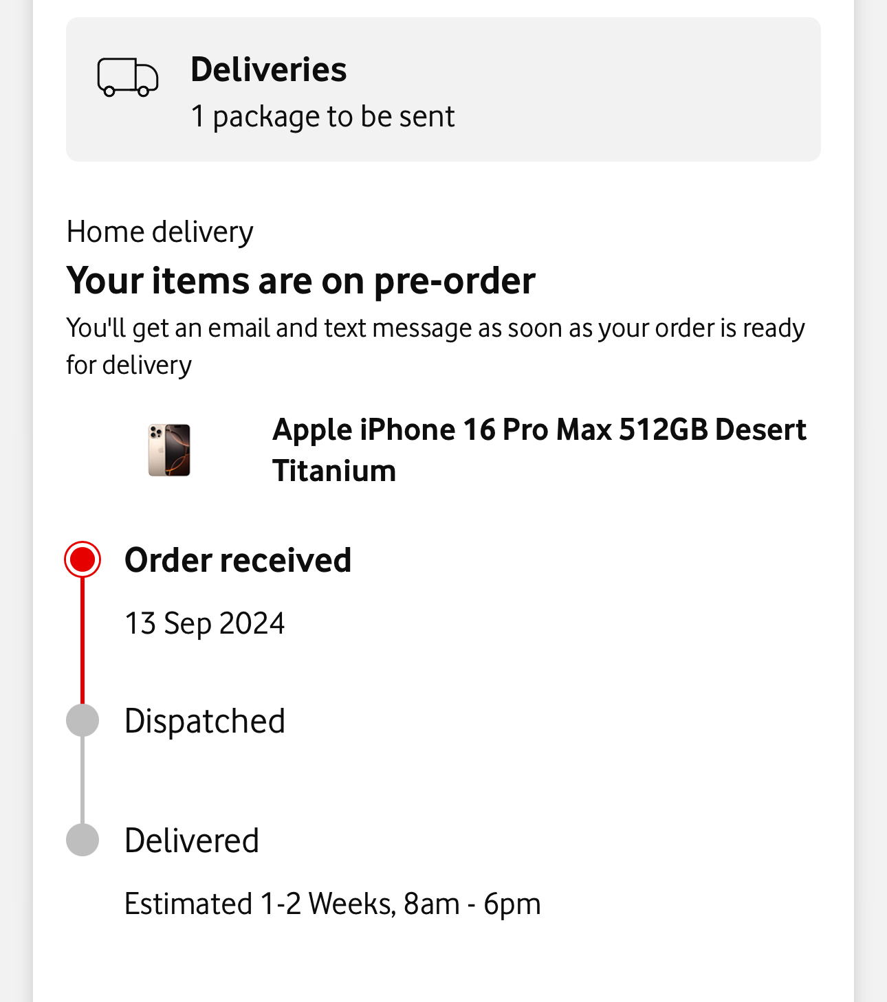I definitely wouldn’t have ordered and paid a premium to Vodafone if it wasn’t going to be a launch day delivery. Feel a bit conned.