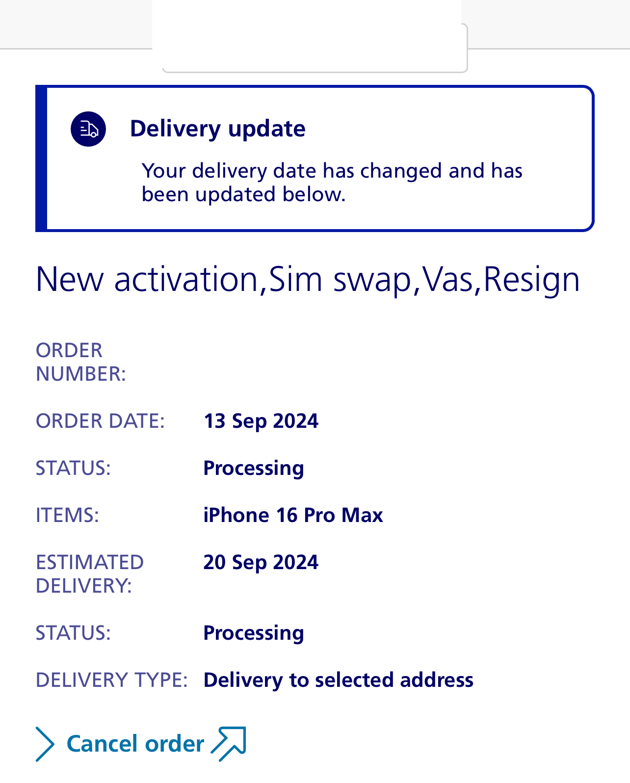 Nothing whatsoever. Still shows processing with a delivery date of 20/09/24So I'm in exact same boat, any movement on yours or any indication from O2 when they plan on delivering? Such a shambles this year.