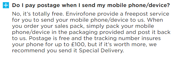 Envirofone used to include special delivery (signed for) postage in trade in's over a certain value. Not sure if they still do. Doesn't look like it from their FAQ's. I recall one year my trade in was below the value so I think I paid for peace of mind.