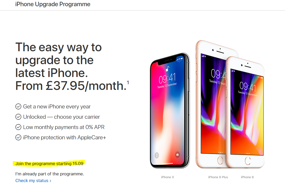 Plus I'd like to enroll on the iPhone upgrade programme (or iPhone payments plan, what's the difference apart from no apple care on the latter?)