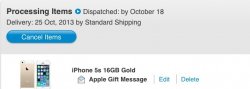 I think Apple are due a wee call from me based on this, though. I ordered a 16G Space Grey on the 25th September, have put up with the change in Order Status nonsense three times now and it's still sitting at 'Preparing for Dispatch: Dispatched: October'.