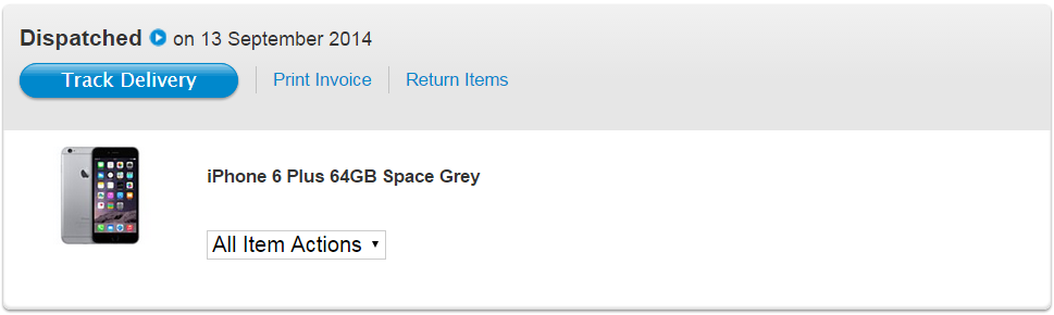 S stereowax macrumors newbie Sep 15, 2014 3 0 Sep 17, 2014 #5,364 Dispatched!!! No email but I just checked the website. Carrier is UPS for me.
