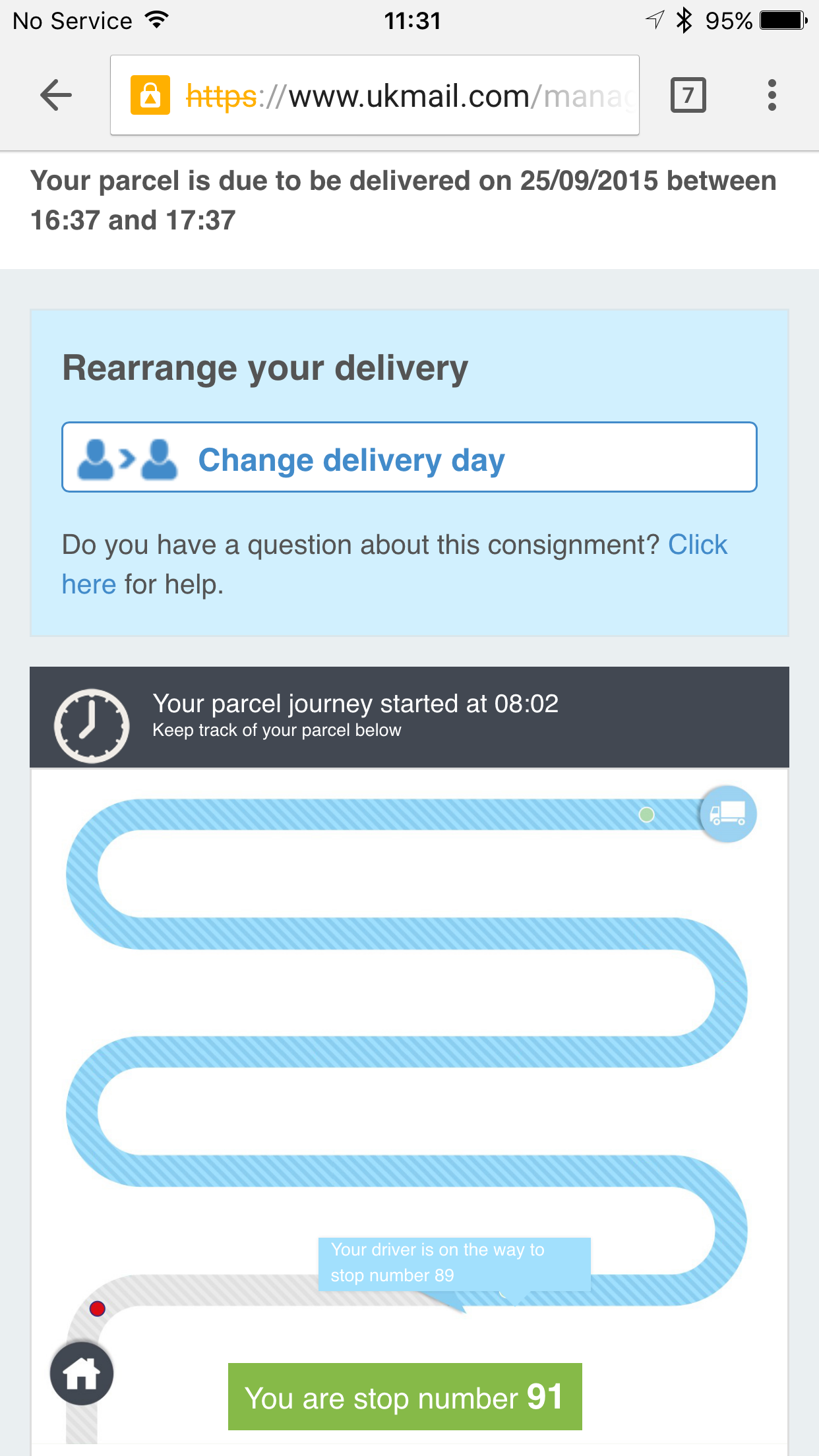 Your parcel will be with you today between 19:00 and 20:00![]()