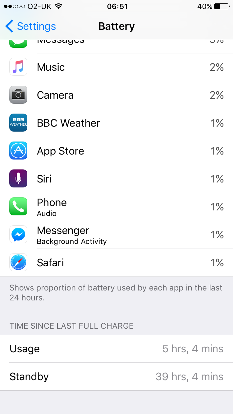 I'm running iOS 9.0.1. I'm only 8 hours off this being two days between charges, pretty good! And considering this is it's first charge things could improve further after a few more cycles, we'll see.That seem OK to me. Are you on 9.0.1 or 9.1 beta?