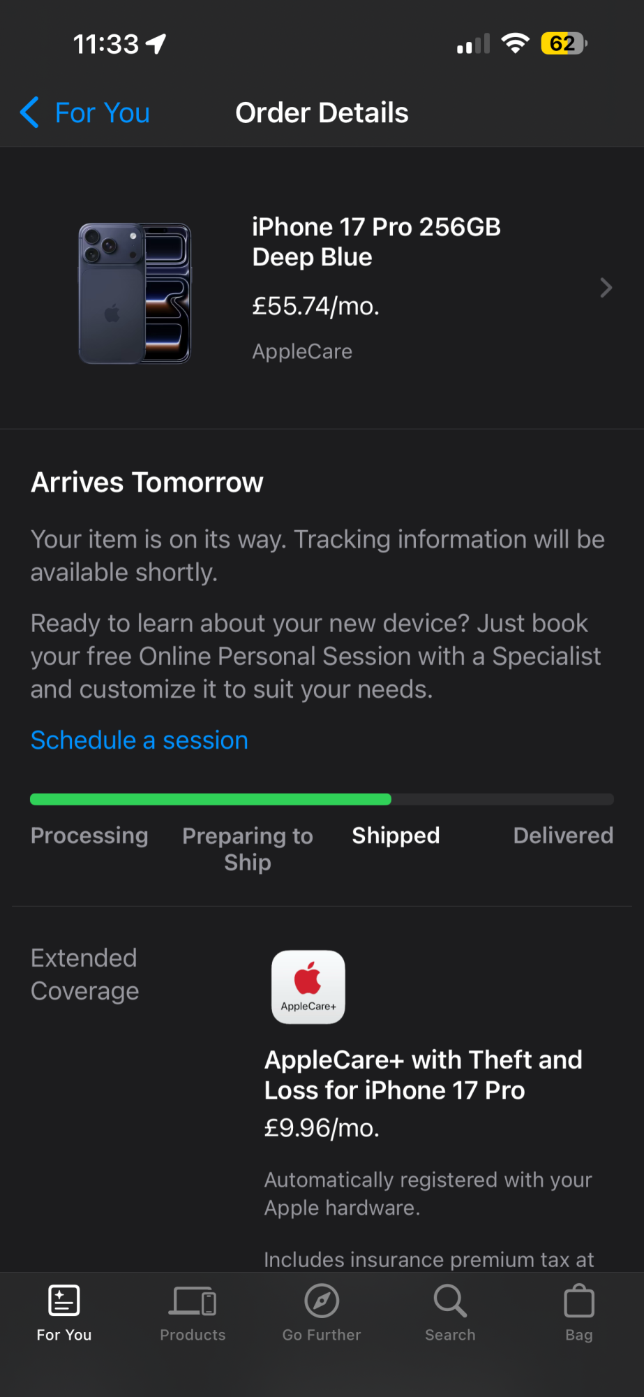Just had my shipping notice for the iPhone and case - AirPods Pro 3 still “preparing”. DPD delivery for iPhone and case.Still waiting here for my orders from Apple to change to “shipped” (iPhone 17 Pro silver 256gb plus clear case) and AirPods Pro 3 (separate order)…………..