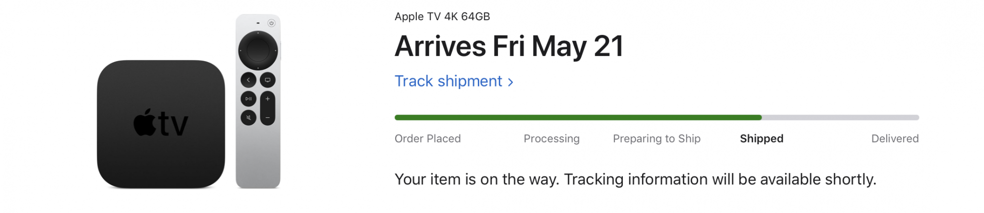 Mine still says 21-27th but just had shipping tracking via Dpd come through - coming 21stMines now says shipped but still says the 27th which I find odd as I ordered it 13:01. Also no shipping tracking