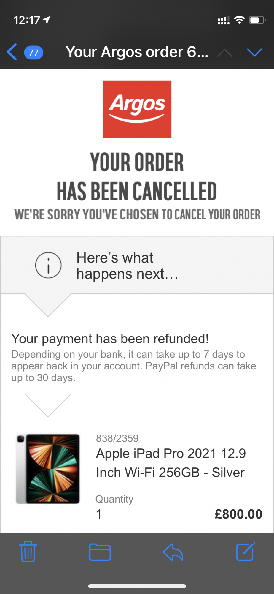 Argh Argos refunded my £800. Don’t know if I can be bothered to complain