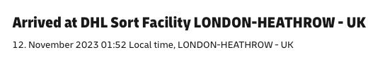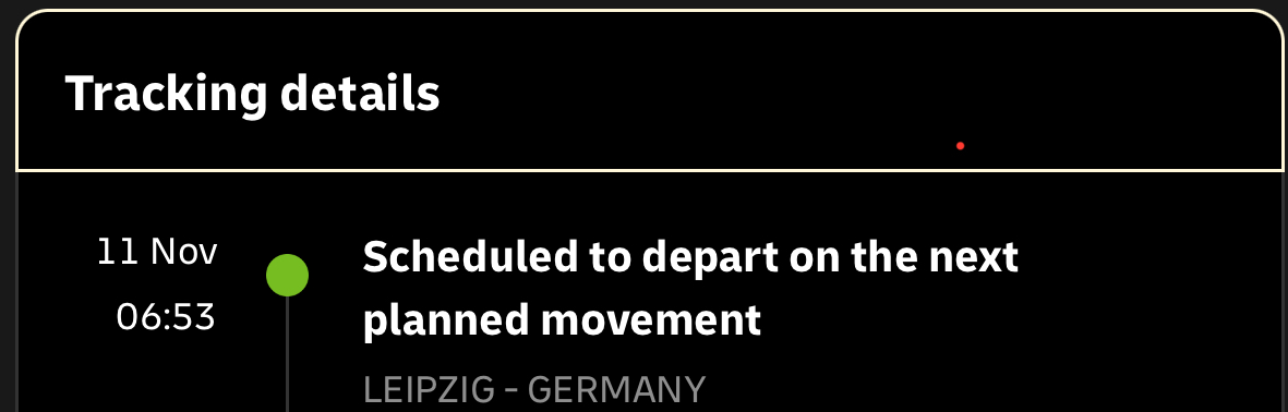 I'd be surprised if it gets on a plane so soon after being processed. There's another flight to EMA in about an hour that's a more likely choice. Still, East Midlands is in the arse end of nowhere so even if it gets there in the next couple of hours, it's still a several hours drive down to civilisation so I doubt it'd get down to me ready for delivery rounds, if they are doing Saturday deliveries.