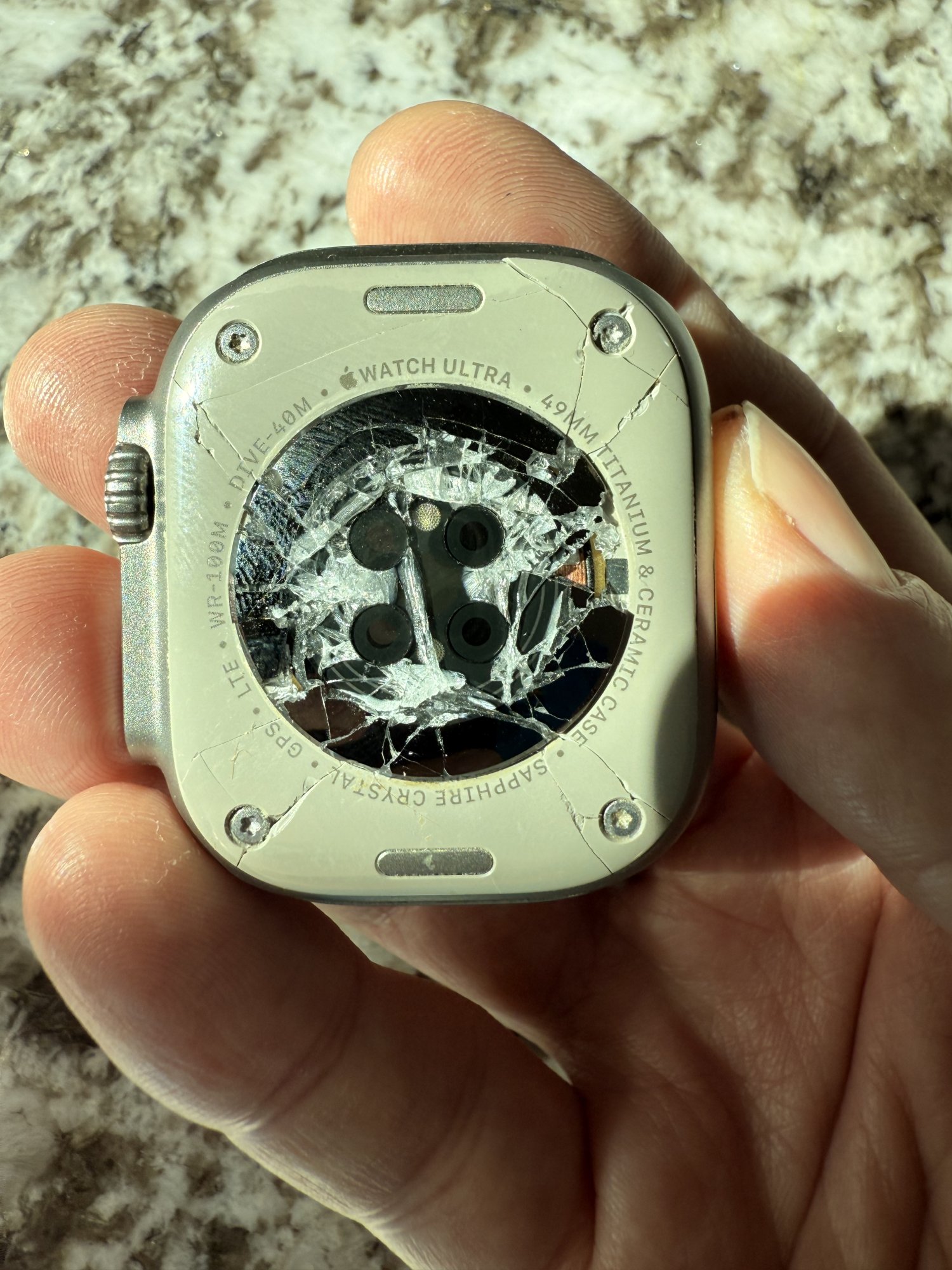 I preordered a new Ultra 2 in black and received it on 9/20 without any issues. I then preceded to turn off Find My on my old Ultra 2, wipe it, boxed it up, and sent it off to Apple as I normally do as a part of the trade-in program. Then on 10/10 I get an email from Apple saying that my trade-in credit has been reduced to zero with the reason being “data erasure unsuccessful”. My only option at that point was to either accept the adjusted value or decline and have the device sent back to me in the same condition it was received by them. I know for a fact I performed all the necessary steps to wipe the device prior to sending it in so I rejected the adjusted offer and asked for it to be sent back to me thinking I could just turn around and sell it privately instead. Fast forward to today and I get the watch back only to see that the entire backside of the watch is now smashed as if it had been hit with a hammer.
