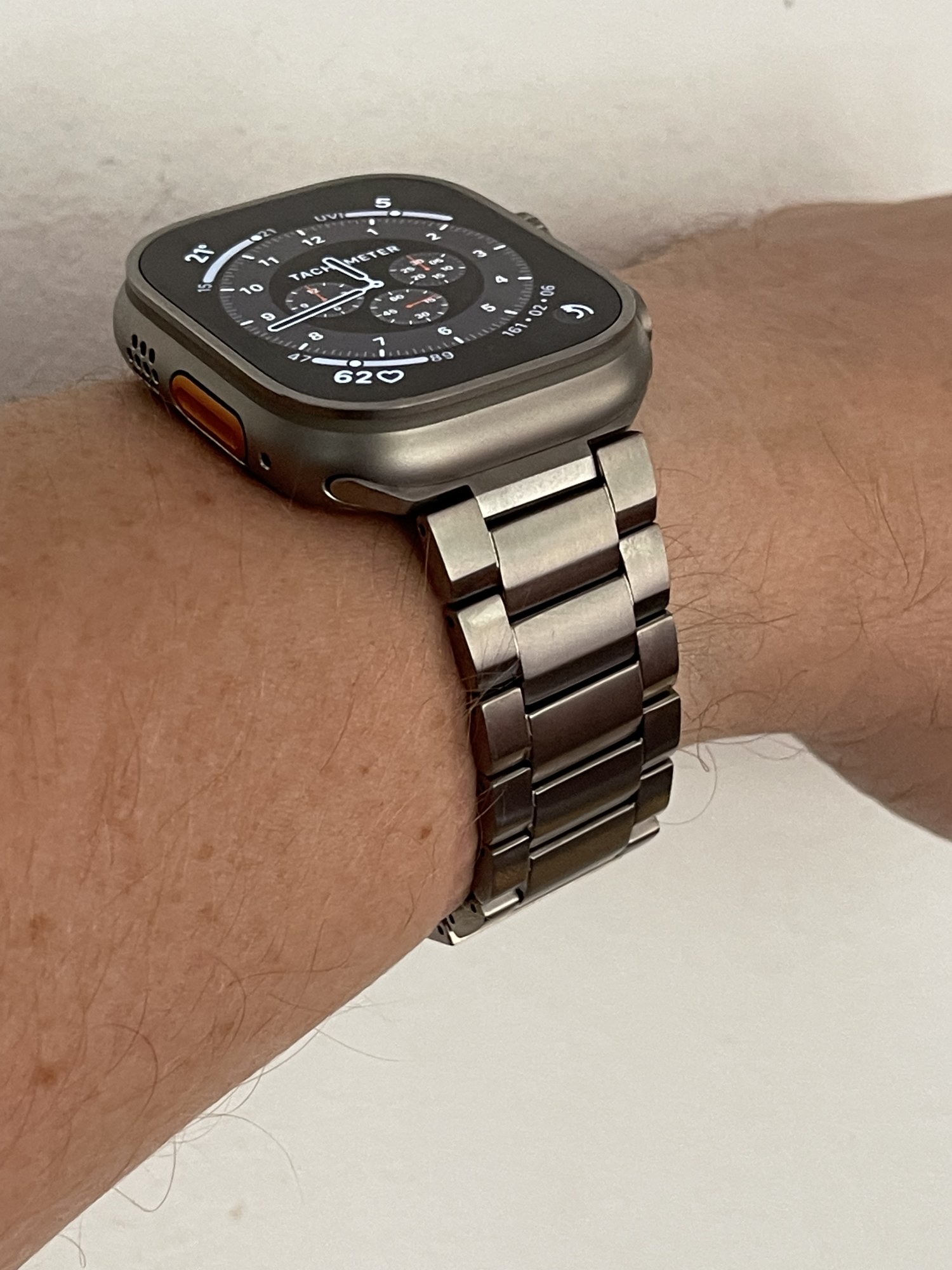 I have recently been searching for a nice titanium metal band to go with my Ultra. I bought the 3 you see below. I am posting this as I am wanting to share in case someone else is looking for one too. I plan to return 1 and 2 and keep number 3.