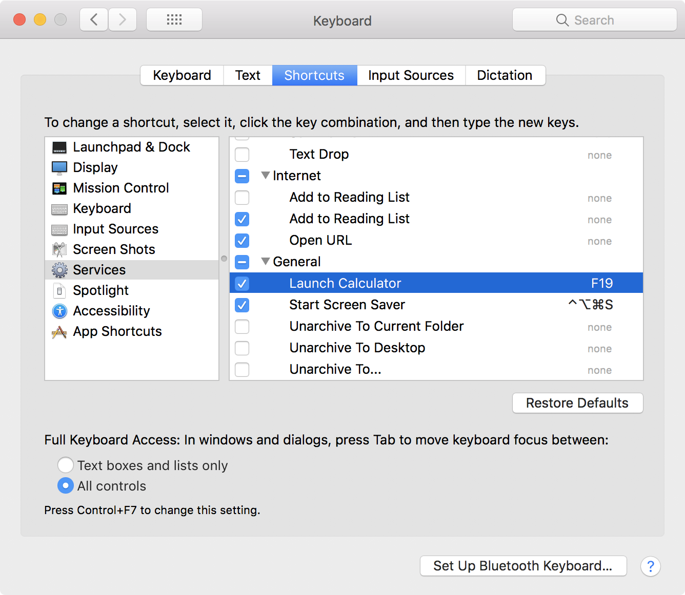And now, all you need it just make a service in automator to allow F19 to launch Calculator.