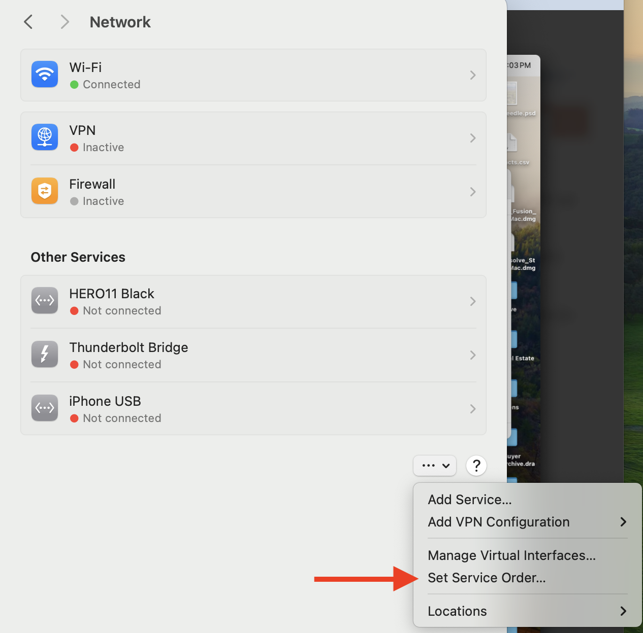 In the past OSs, there was a way to set to set the priority connections. But that does not seem to be available in MacOS 14.1.1.