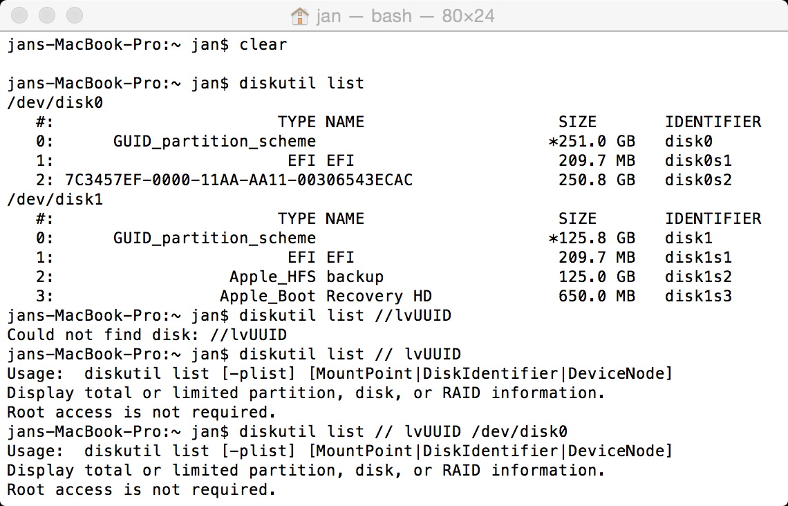 try the "diskutil list // lvUUID" and i cant find the lvUUID