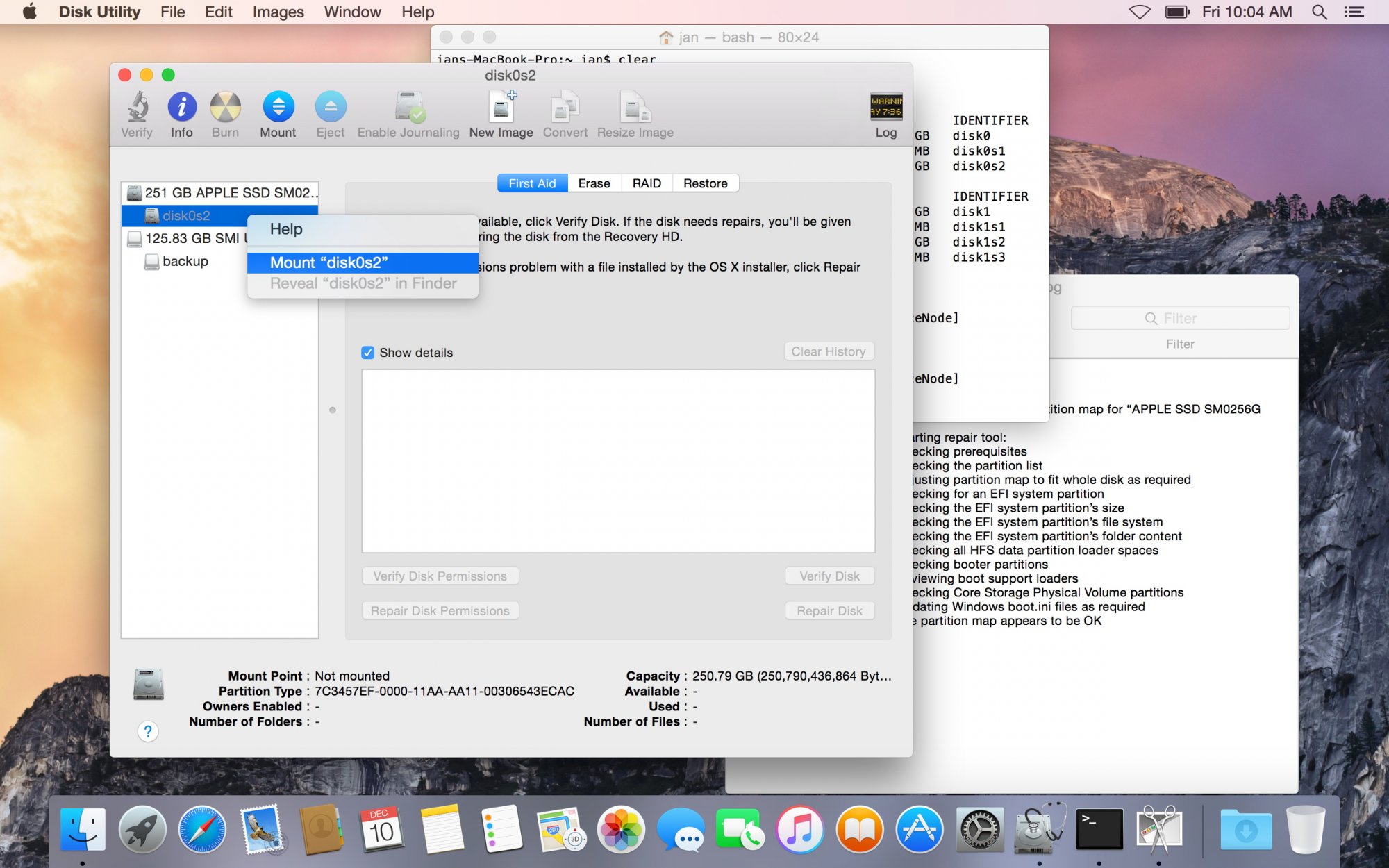 tried sudo mountDisk readOnly /dev/disk0s2" (fail)