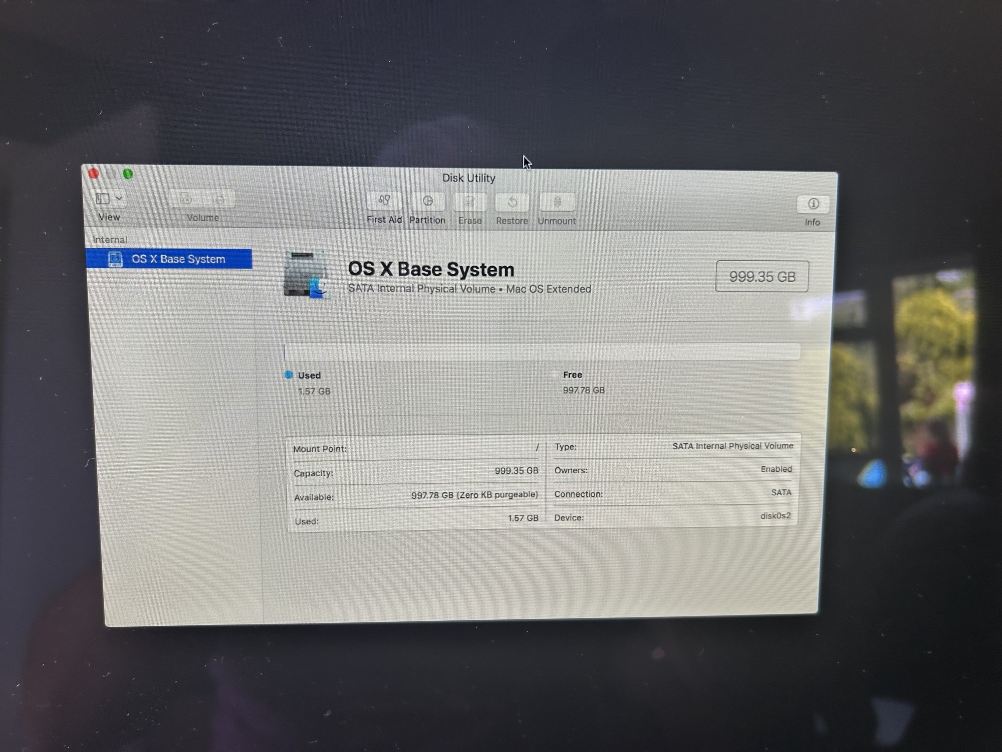 I also noticed in the utility that the hardrive was no longer appearing, just the operating system drive.