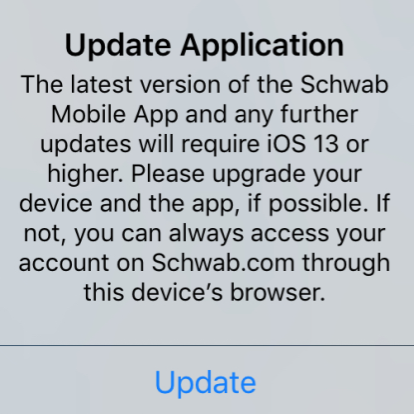 I updated my iPad mini 2 to 12.5.4, then I updated the current Charles Schwab App.