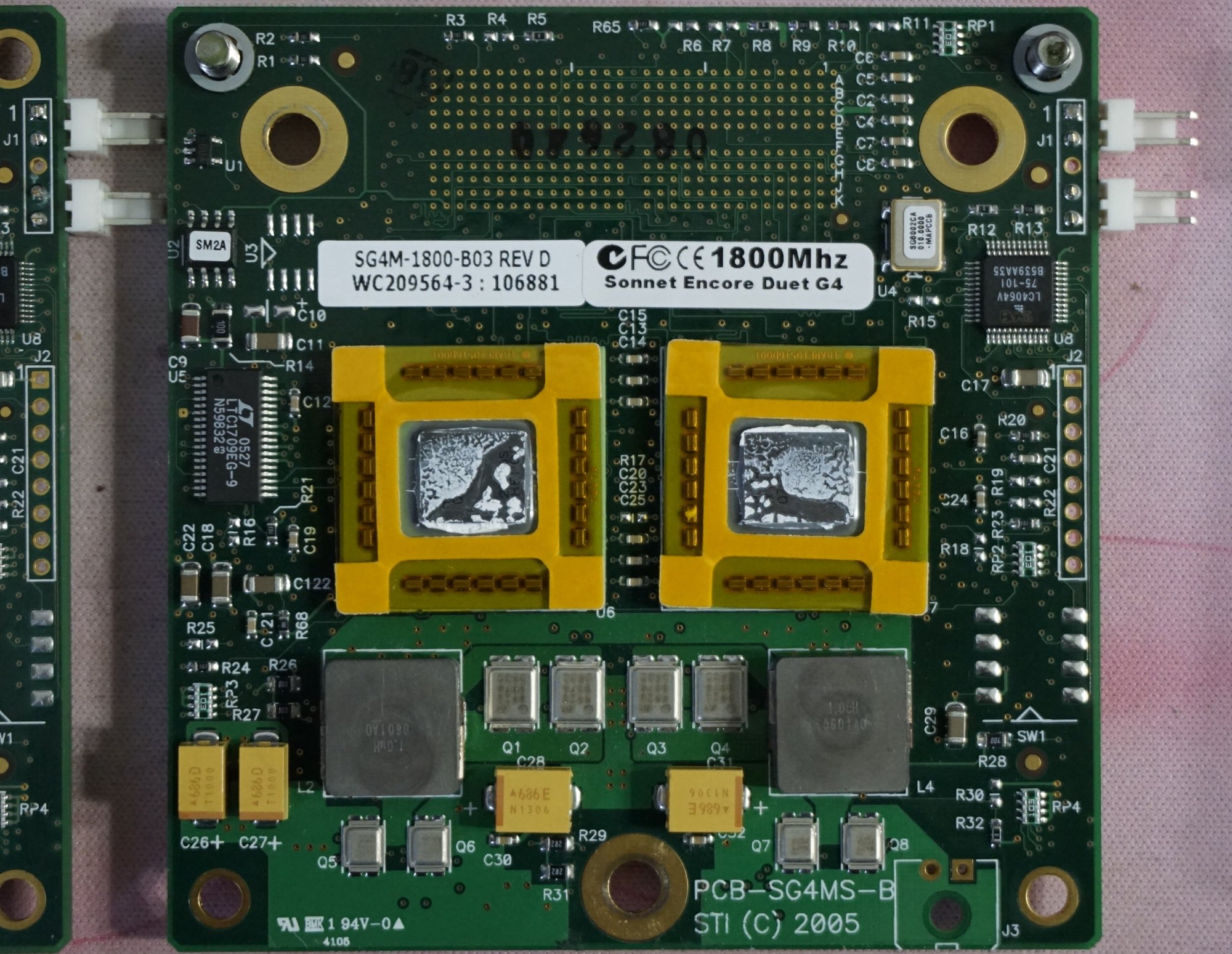 So. I've got two Sonnet Encore Duets 1.8 in my possession. One works perfectly, and the other one is broken. The broken one consistently kernel panics with memory mapping errors halfways through the boot process, and I've been scratching my head for a while trying to fix it - I tested it in various configurations, 100/133mhz bus, unplugging the fans, etc. but nothing seems to work.