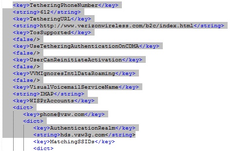 I'm a newbie, not sure this is the right place to post this but here's my question. Does anyone know how to configure the Verizon IPCC file (ver 13.3) for iphone 5 to allow the hotspot feature to work? I'm on an unlimited data plan currently and they are blocking the feature. I'm not sure what line or apn i need to mess with within the file....or if modifying the file will even work since I understand it has to be a signed ipcc file.
