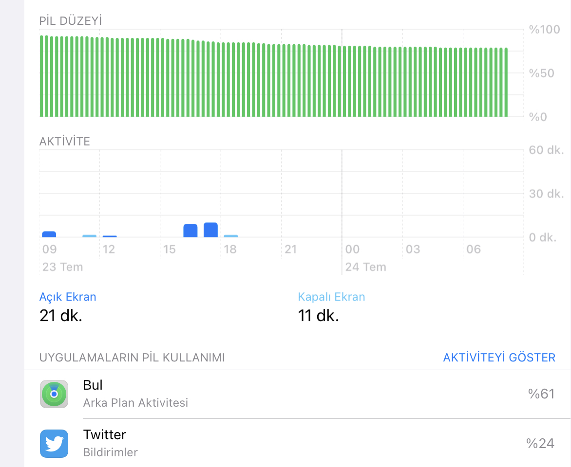 OK 24 hours later... My device has gone from 89% to 87% and the find my ... is at 21%. Since I am not seeing the huge drain I am standing by my initial theory, the loss of battery time is due to stuff running in the background. But what do I know about anything. I do know how to use punch cards, a dec writer, and owned a TRS 80 with a stringy floppy. bye all, this thread is boring.