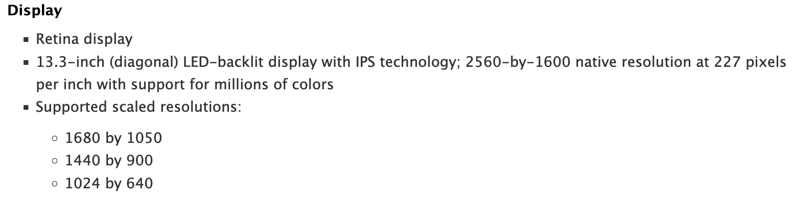 For laptops, this really isn't a problem: Apple will simply put a good native resolution in there. But as soon as you want an external display, this is a huge problem, because