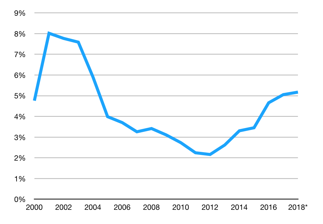 (Pending fourth quarter results, 2018’s percentage will likely prove to be a bit higher than shown here.) In other words, especially considering how much their revenue has grown since then, they’re working on something big.