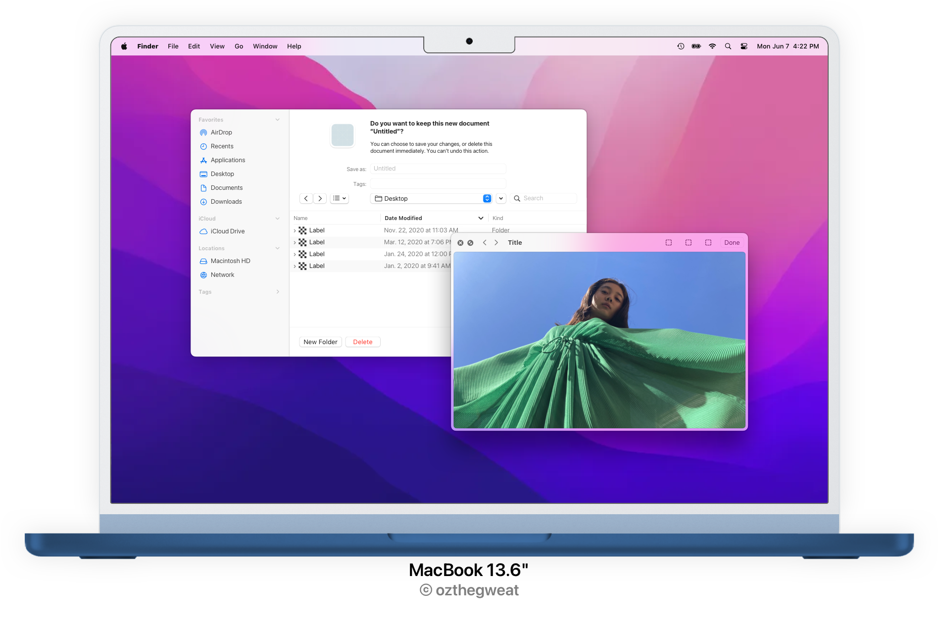 So basically the same size as the current Air, with the screen pushed right into the corners (That's 30.41cm x 21.24cm). Could you do one for the 15.2" as well please? I estimate that would be just a fraction bigger than the old 2017 MBAA quick mockup based on an earlier thread of mine leads to a device size of: