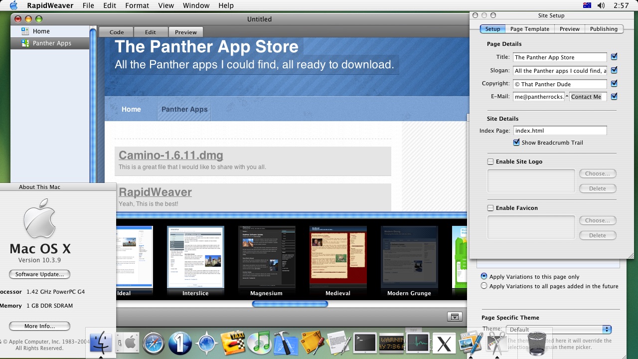 Here's the Theme Browser view and site setup inspector.