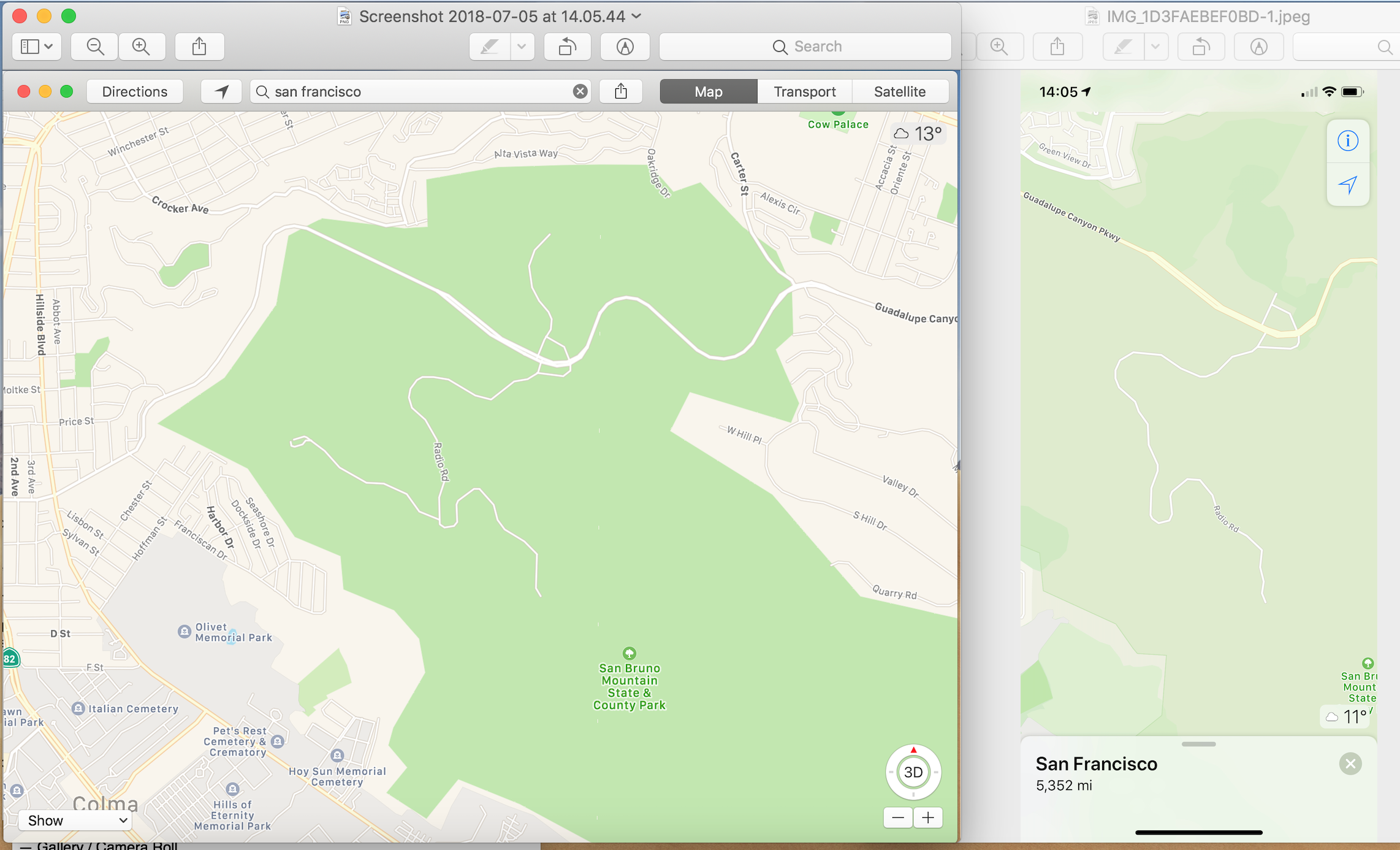 Just for kicks here are a couple of screen shots from near the Apple Campus. iOS11 first and iOS12 second