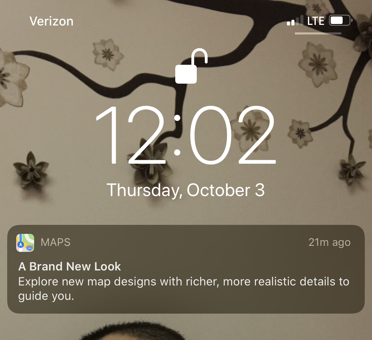 Side note: My phone is occasionally still opening Apple Maps into 2D mode, although it's been better lately. It'll also sometimes open randomly to showing the entire country. Also, in CarPlay, finishing a route sends the map back into 2D mode, and I'm still seeing "static" in the directions box at night. These issues have yet to be fixed.