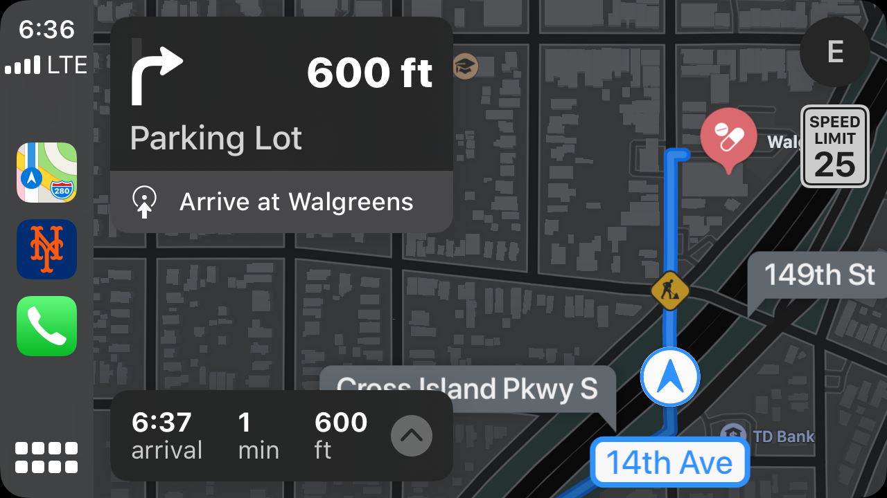 This is interesting and new. When the final direction is to turn into a parking lot, Apple Maps now announces “Turn right into the parking lot!”, where it used to just say the vague “Turn right.”