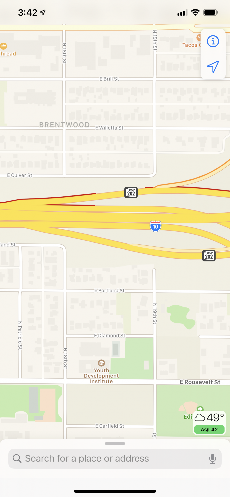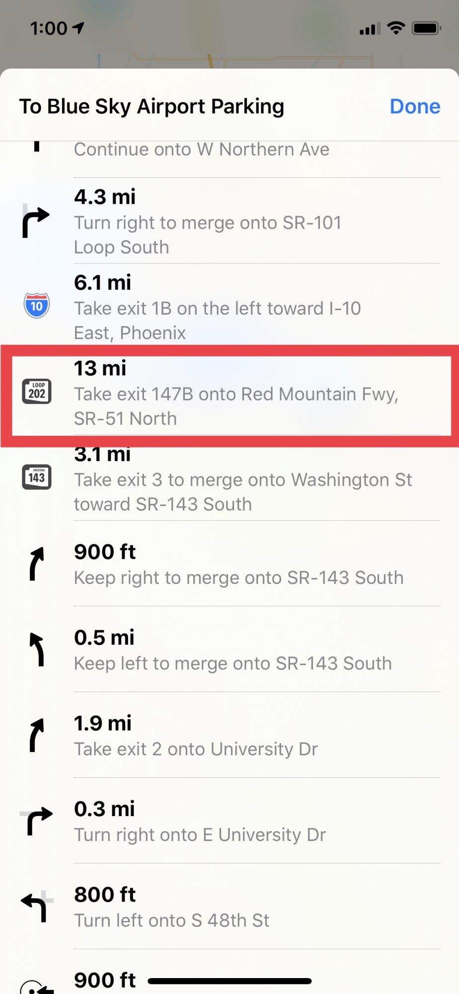 Notice how the interchange is drawn. Once you leave I-10 onto the exit ramp towards State Route 202, notice how the road is drawn thick yellow, like the rest of the highways? Apple Maps is treating this road as part of Route 202 itself, rather than as an exit ramp. And because of this distinction, the directions ignore the exit ramp split for Exits 147A and 147B, because it believes you're already on the main highway it expects you to be on. I'm experiencing this problem a TON in New York City. I've reported this at least a dozen times at various locations, but none of have fixed yet.