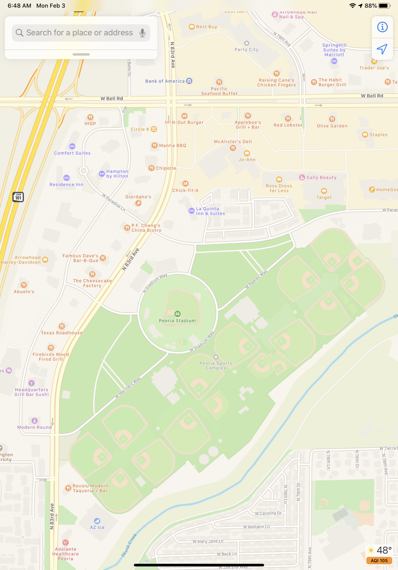 Peoria Sport Complex in Peoria Arizona. I like the detail Apple applied to the map. I prefer the traffic information from Google.