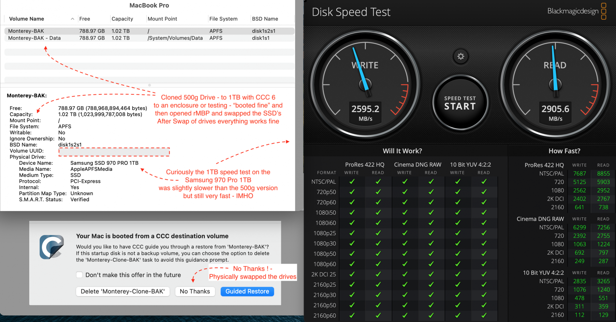 Getting my "Monterey rMBP" ready for prime time, I decided to upgrade the SSD from 500g to a 1TB Samsung 970 PRO 1TB