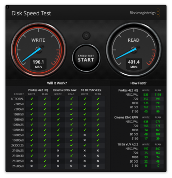 Here's the benchmark from Blackmagic disk speed test