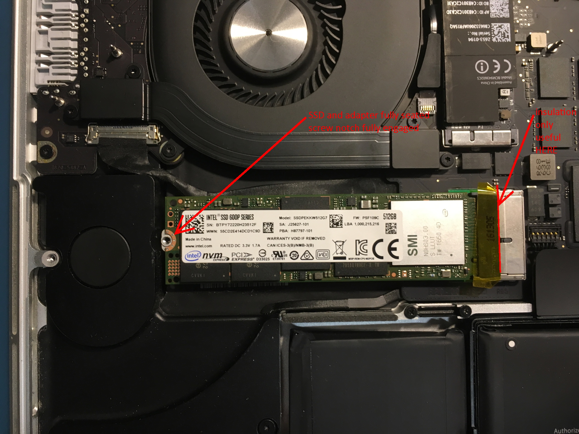 4) Install blank Kingston SSD and adapter in my rMBP 15". I have put insulation tape over the connector.