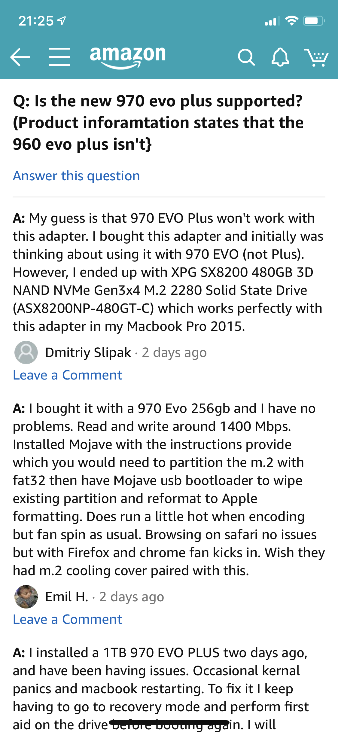 After doing my best to go over this thread I’m leaning on the Crucial P1 since the Samsung EVO sounds problematic. I appreciate any thoughts.